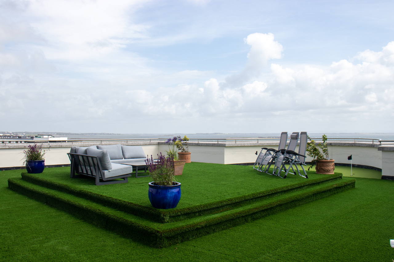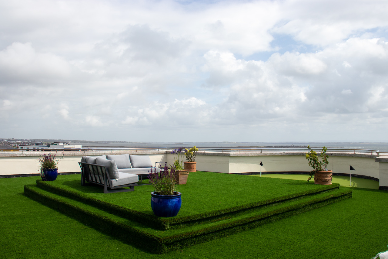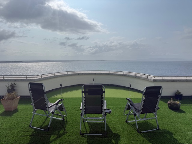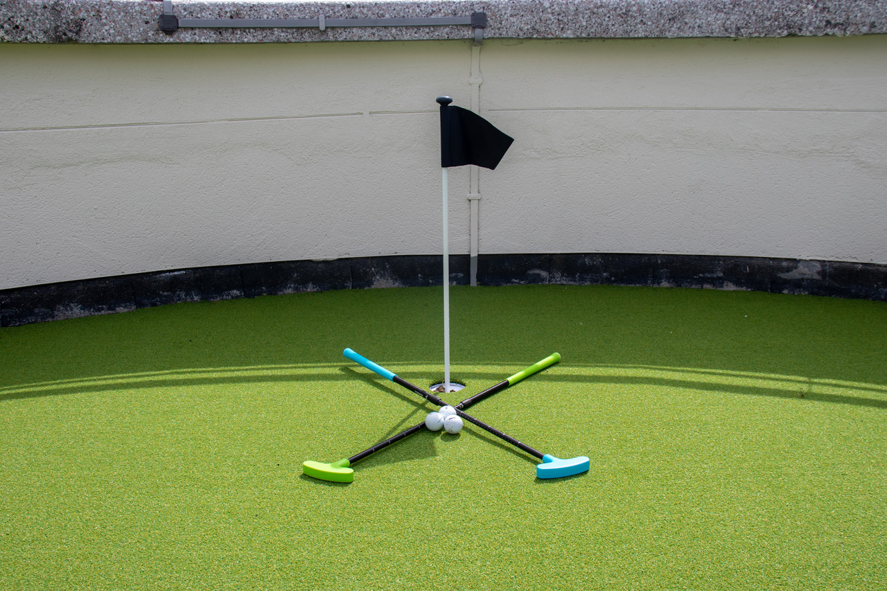 - Outdoor lounge set, sunbeds, 2 putting greens.